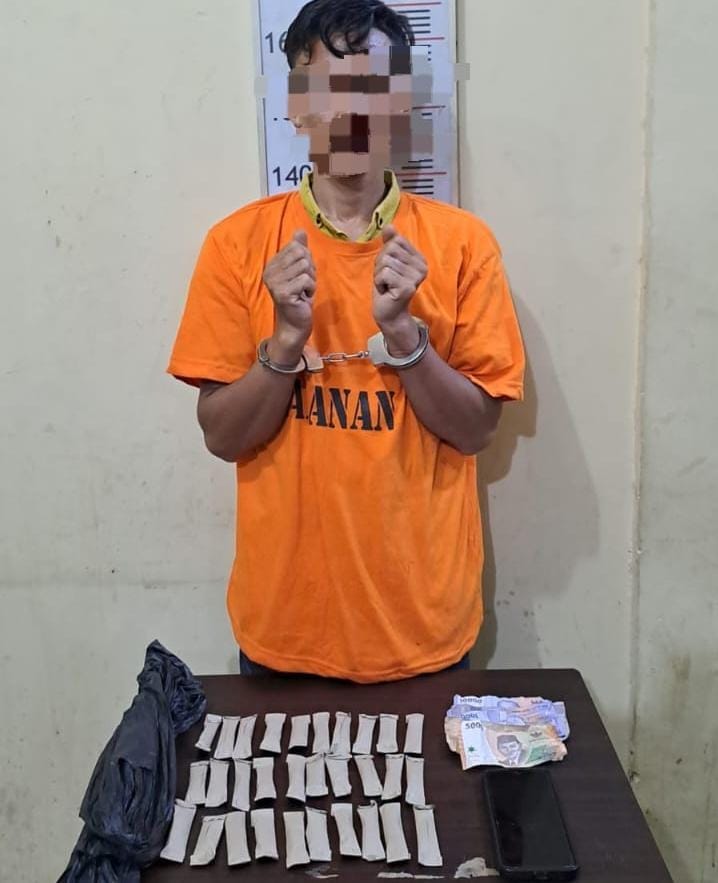 Dalam penangkapan tersebut, petugas berhasil juga mengamankan barang bukti 30 paket bungkusan kertas berisikan narkotika jenis Ganja.