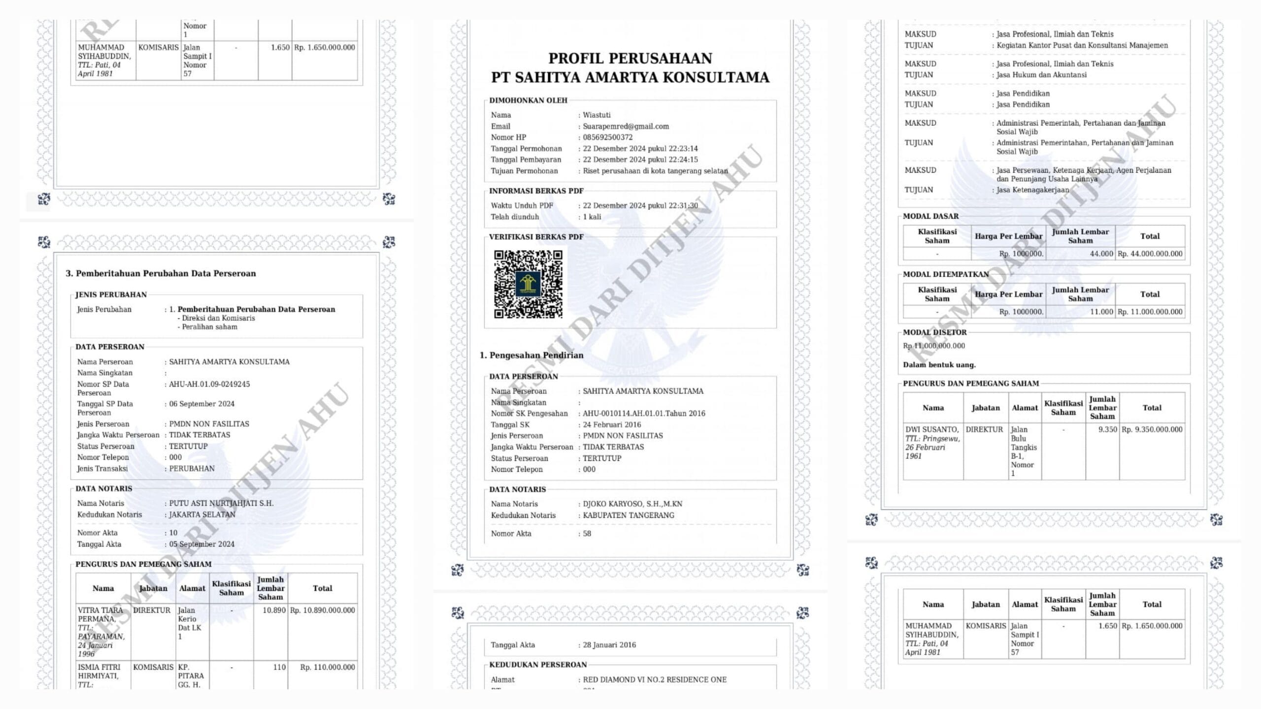 Kemudian, persis ketika Darmo ditunjuk Menteri BUMN Erick Thohir sebagai Dirut PLN menggantikan Zulkifli Zaini, persisnya pada 17 Maret 2021, PT SAK diketahui melakukan AHU perubahan pada 17 Maret 2021. Untuk perubahan ini, mereka menggunakan jasa notaris Maya Sari Dewi di Kabupaten Tangerang.