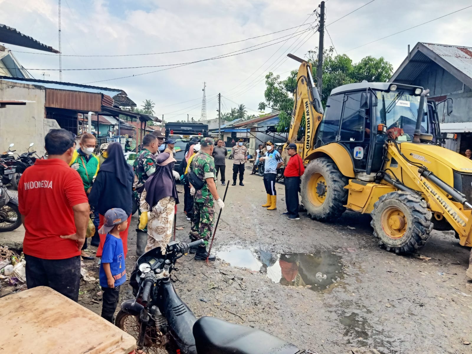 Personel Polsek Pangkalan susu bersama masyarakat Lingkungan V Kelurahan. Bukit Jengkol, membersihkan sampah yang menumpuk, Rabu (15/01/2025).