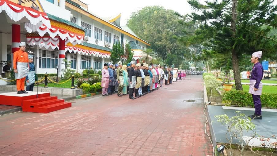 Langkat-Formappel.com||Pj. Bupati Langkat, H.M. Faisal Hasrimy, AP, M.AP, memimpin upacara peringatan Hari Jadi Kabupaten Langkat ke-275 yang berlangsung khidmat di halaman Kantor Bupati Langkat, Jumat (17/1/2025). Upacara ini diikuti dengan antusias oleh para ASN di lingkungan Pemerintah Kabupaten Langkat, yang tampil dalam balutan pakaian khas Melayu, mempertegas identitas budaya daerah.