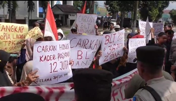 Dalam orasinya, massa meminta Kejari Langkat untuk serius menangani laporan kasus dugaan koprupsi Dana Desa Serapuh Asli di Desa tersebut.