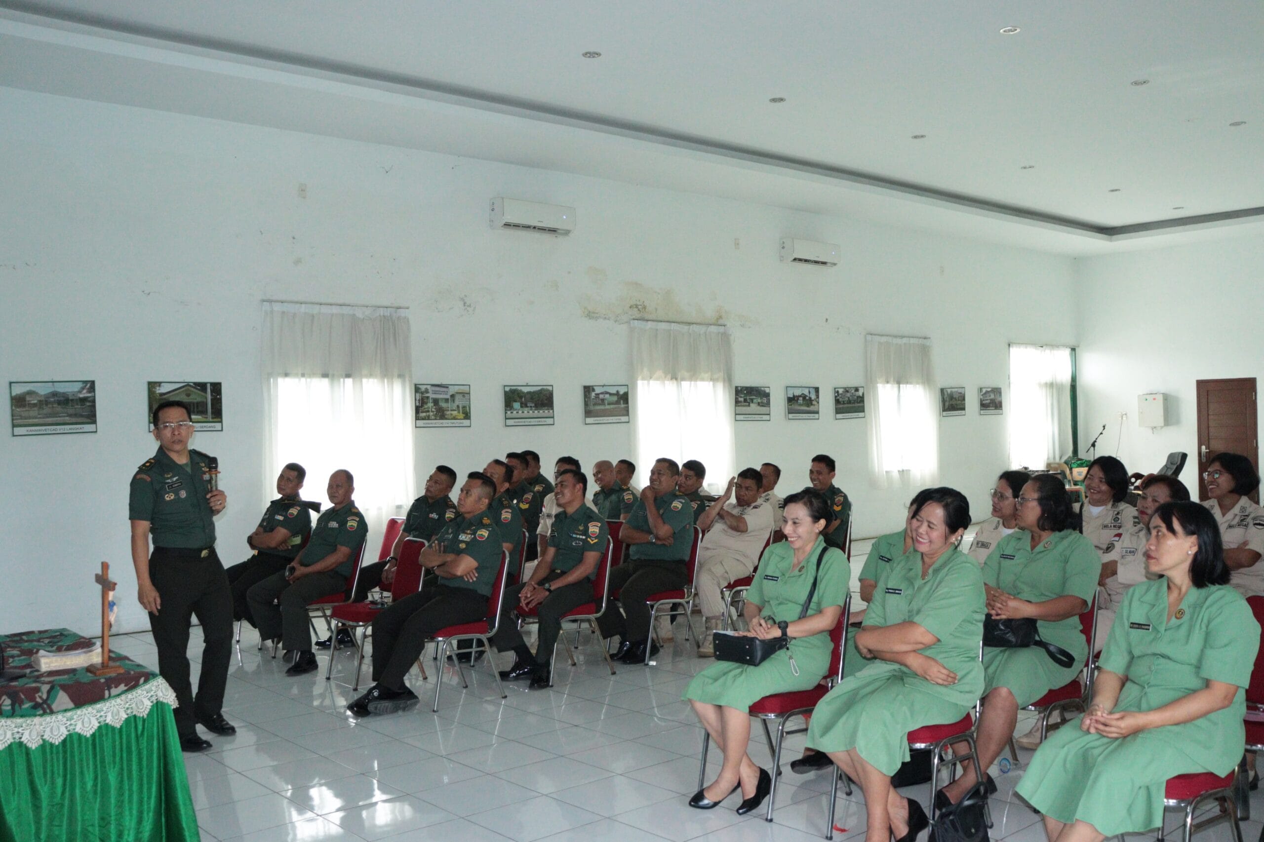 Medan//Formappel.com | Kepala Pembinaan Mental Kodam l/BB Kolonel Inf M. Saidi Harahap memberikan Pembekalan Bintal Rohani, Idiologi dan Kejuangan kepada Personel Babinminvetcaddam l/BB dan Zidam l/BB beserta keluarga. Acara tersebut dilaksanakan di Mababinminvetcaddam dan Mazidam I/BB Jl. Letjen Suprapto No.1 Kelurahan Hamdan Kec. Medan Maimun Kota Medan Provinsi Sumatera Utara, Senin 28/04/2025.