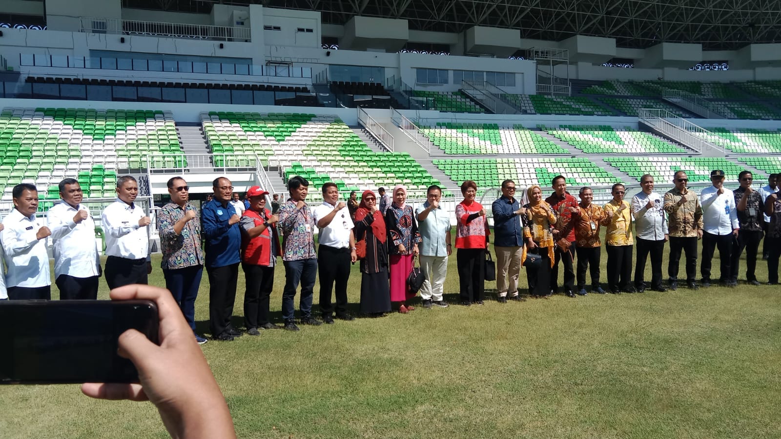 Kegiatan kemudian dilanjutkan dengan peninjauan langsung ke area stadion dan ditutup dengan sesi foto bersama seluruh peserta kunjungan.