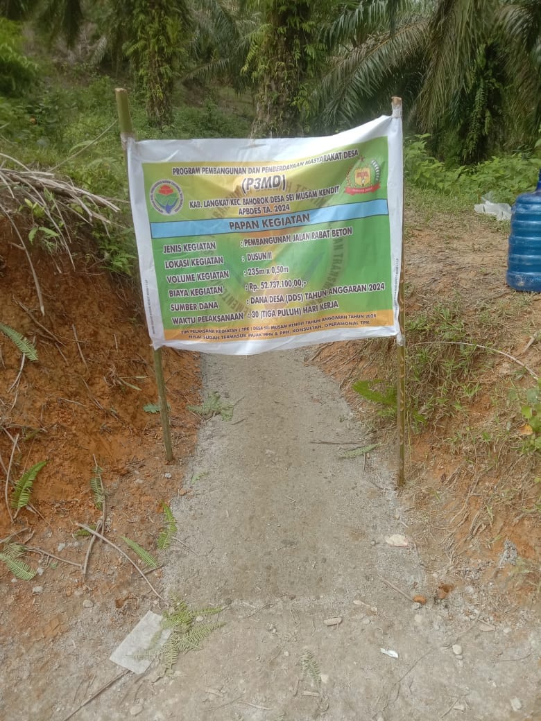 Langkat-Formappel. Com|| Desa Sei Musam Kendit, salah satu desa di Kecamatan Bahorok dan berbatasan dengan Sei Musam di Kecamatan Batang Serangan, terus berbenah melalui berbagai program pembangunan. Geografis Desa Sei Musam Kendit letaknya yang berada di kawasan perbukitan dengan hamparan lahan pertanian memberikan pesona tersendiri yang alami dan asri.