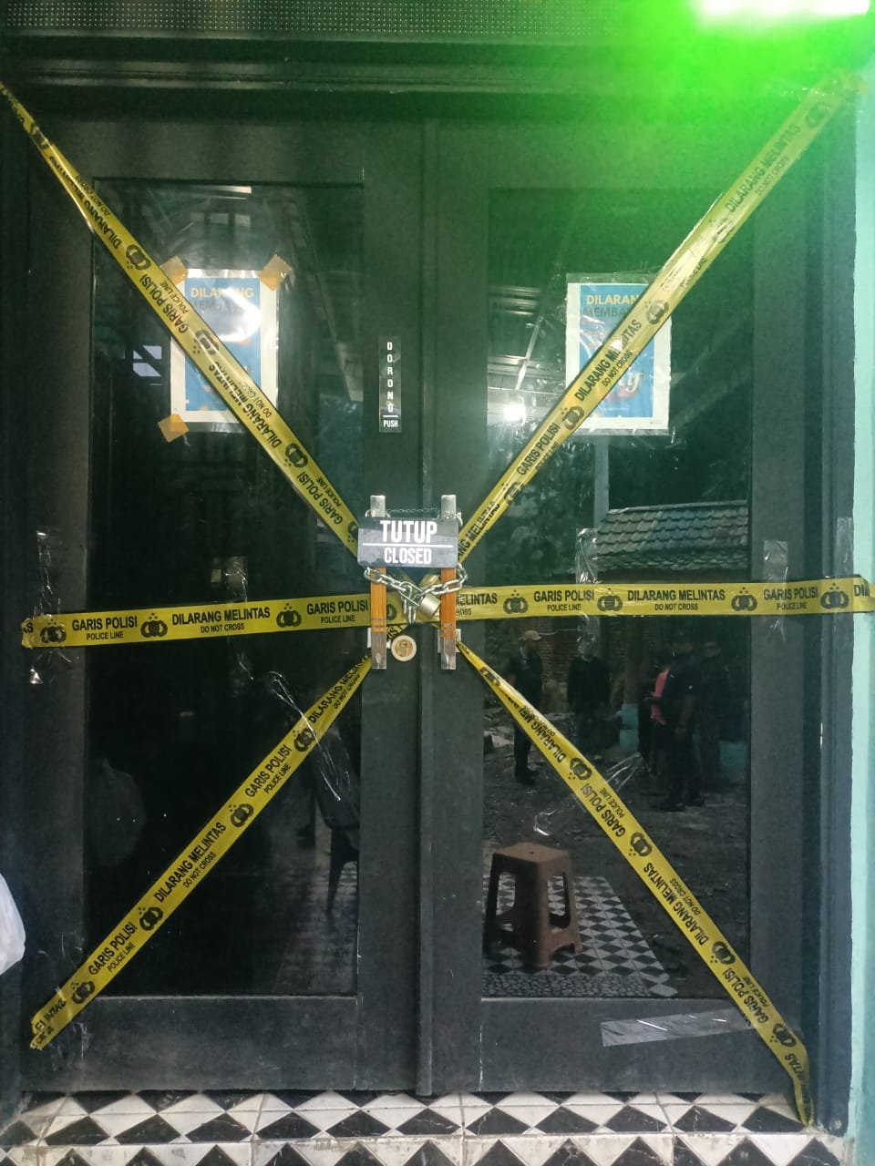 Lanjutnya, pada penggeledahan ulang dan pemasangan police line Timsus Dirnarkoba Polda Sumut disaksikan oleh Kepala Dusun VII Desa Perk Bukit Lawang Darna SP Bangun, Bhabinkamtibmas Aipda Rudi Pujianto dan penjaga tempat hiburan tersebut bernama Suheri, setelah dilakukan penggeledahan, timsus Dirnarkoba Polda Sumut melakukan pemasangan police line dan juga memasang rantai yang telah dipasang gembok.