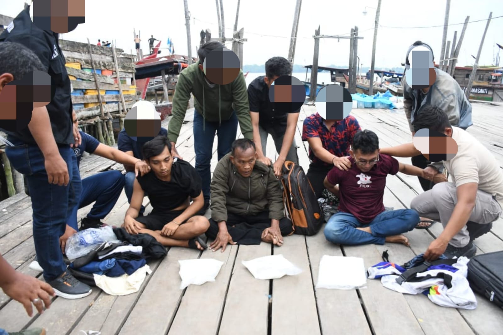 Selanjutnya tim Gabungan melaksanakan koordinasi dengan tim darat untuk melaksanakan penyekatan dan pengejaran, serta tiga orang diduga kurir tersebut berhasil diamankan saat tiba di Dermaga Belacan tradisional.