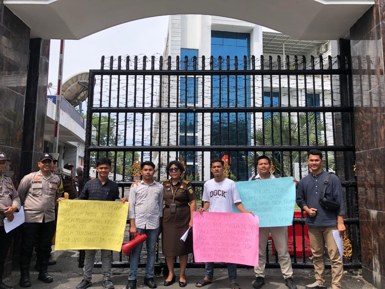 Aksi Gami Sumut mendesak agar Kejatisu segera mengusut dugaan kecurangan dan mark-up anggaran dana desa untuk pengadaan Solar Cell Tahun Anggaran 2023 di seluruh desa yang ada di Kabupaten Mandailing Natal.