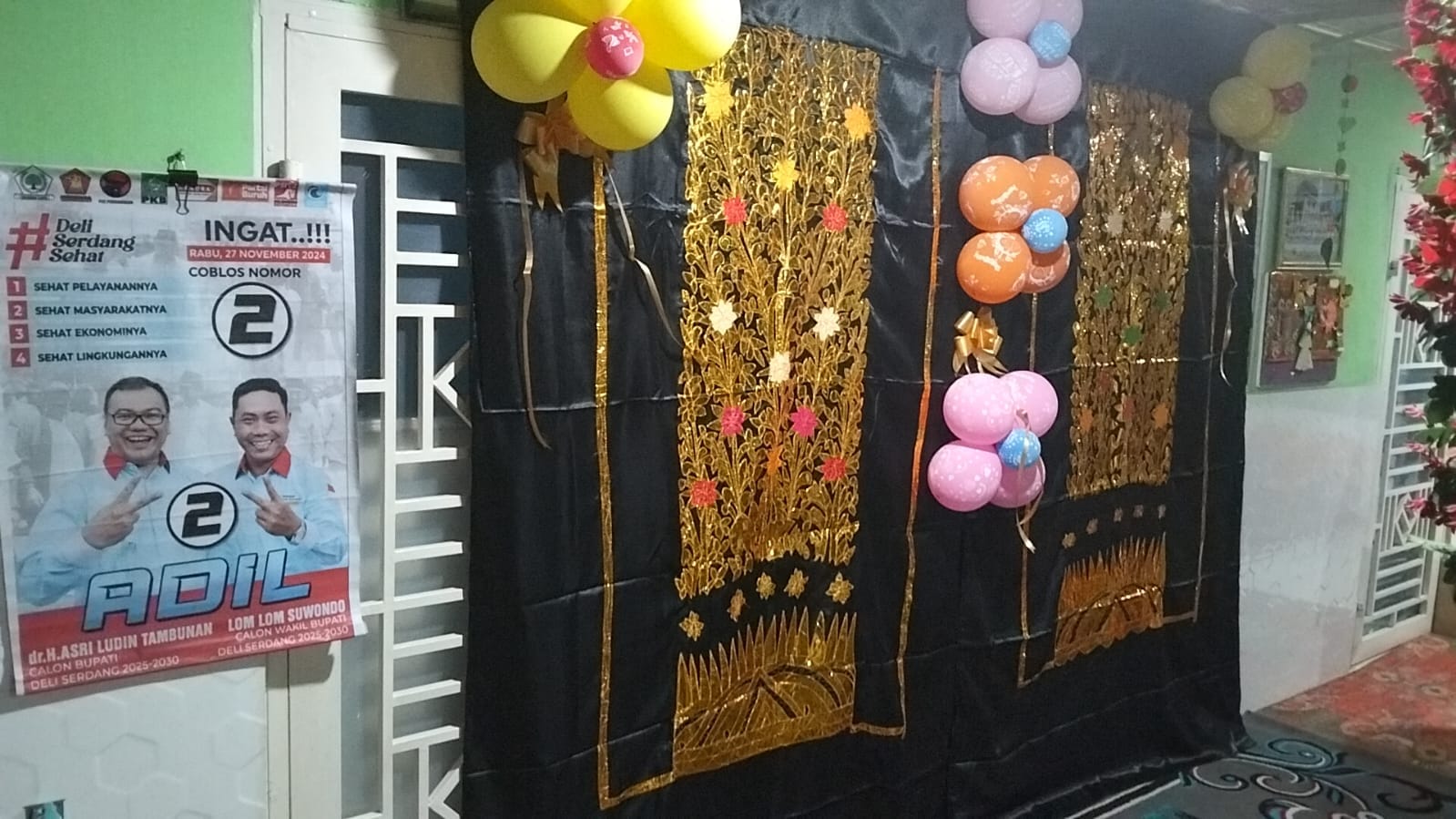 Yang lebih memprihatinkan, di lokasi sekolah telah terpampang poster Bupati dan Wakil Bupati Deli Serdang yang digunakan pihak yayasan dalam acara wisuda tersebut.
