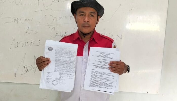Ket Foto : Hendra Syahputra Ketua DPC LSM PMPRI Asahan Tunjukan Surat Rekomendasi Komisi C DPRD Asahan
