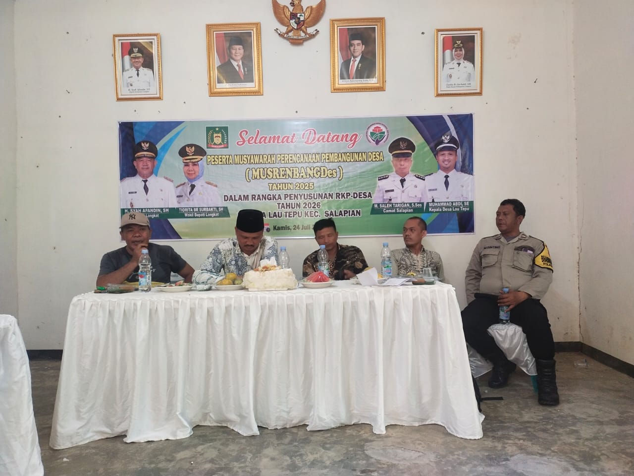 Pembangunan infrastruktur jalan, penanganan penurunan stanting, seperti makanan tambahan balita, ketahanan pangan seperti pengadaan pupuk bagi para petani warga desa setempat menjadi skala prioritas utama yang diaspirasikan masyarakat dalam Musyawarah Rencana Pembangunan Desa (Musrenbangdes) Desa Lau Tepu, Kecamatan Salapian untuk tahun anggaran 2026.