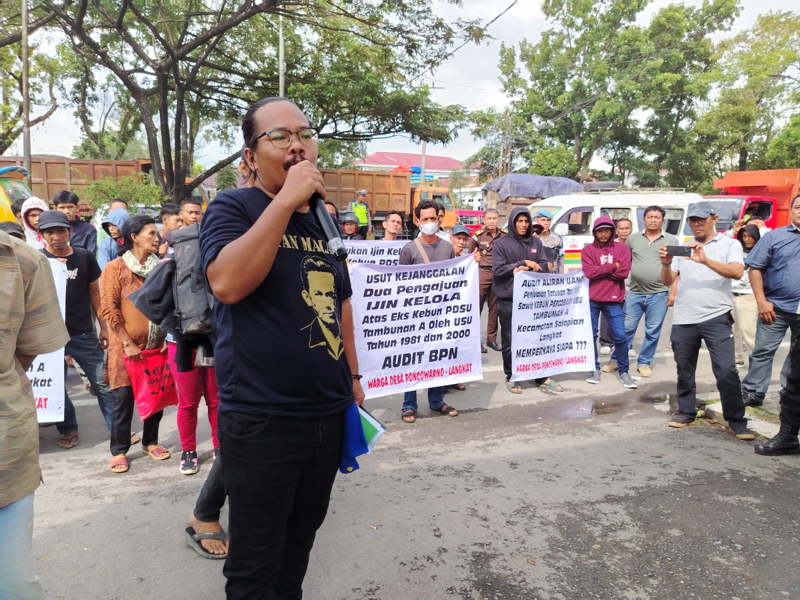Pada Jumat (23/1), sekitar 30 warga Desa Poncowarno mendatangi Kantor Bupati Langkat. Mereka menuntut peninjauan ulang Hak Pakai USU atas lahan seluas ±300 hektare yang selama ini dikuasai kampus negeri tersebut.