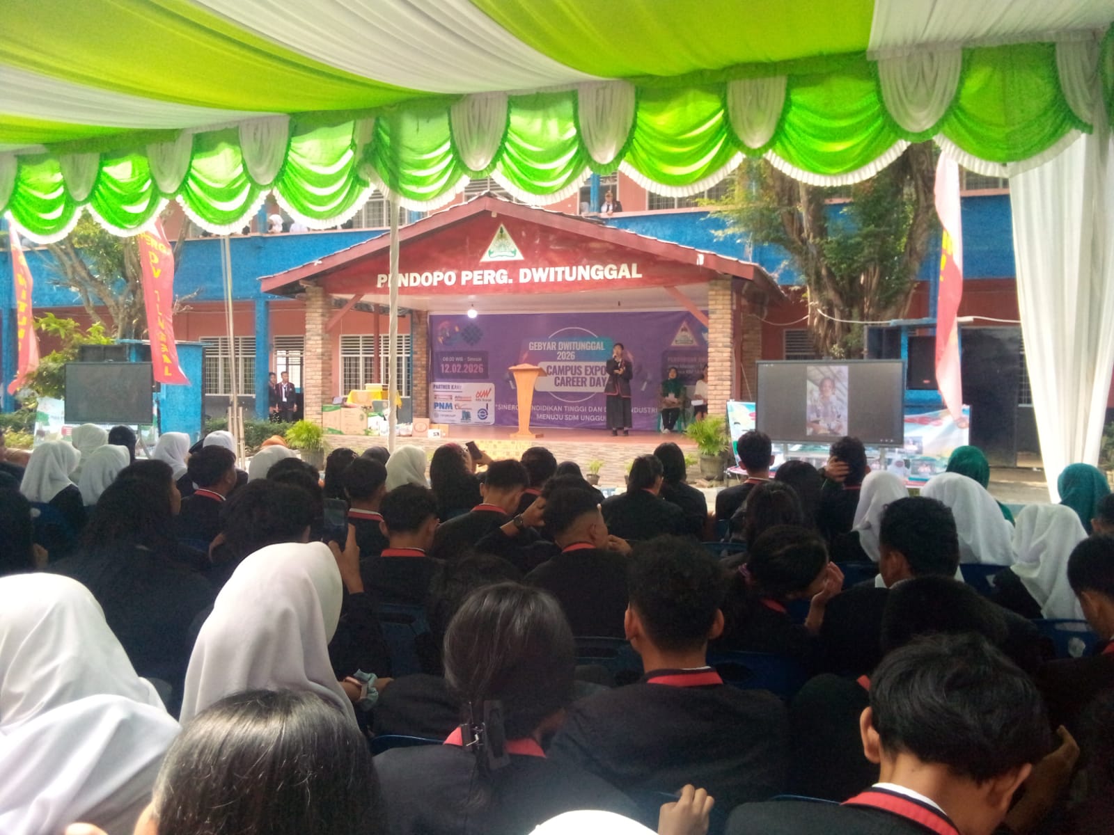 Kepala SMK Dwitunggal 2 Tanjung Morawa, Irwansyah Putra, S.Kom, menegaskan bahwa kegiatan ini bukan sekadar seremoni tahunan, melainkan bentuk nyata keseriusan sekolah dalam membangun jembatan antara dunia pendidikan tinggi dan dunia industri.