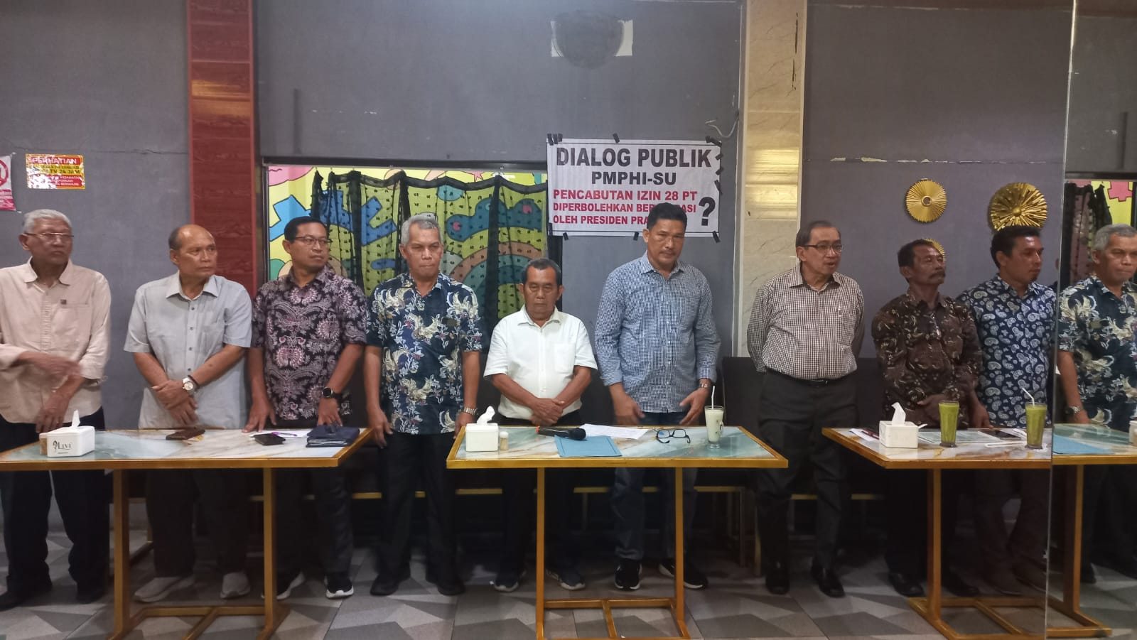 Dukungan itu menguat dalam dialog publik bertajuk “Pencabutan Izin 28 PT Diperbolehkan Beroperasi Oleh Presiden Prabowo” yang digelar PMPHI Sumut di Cafe Teladan, Medan, Rabu (25/2/2026).