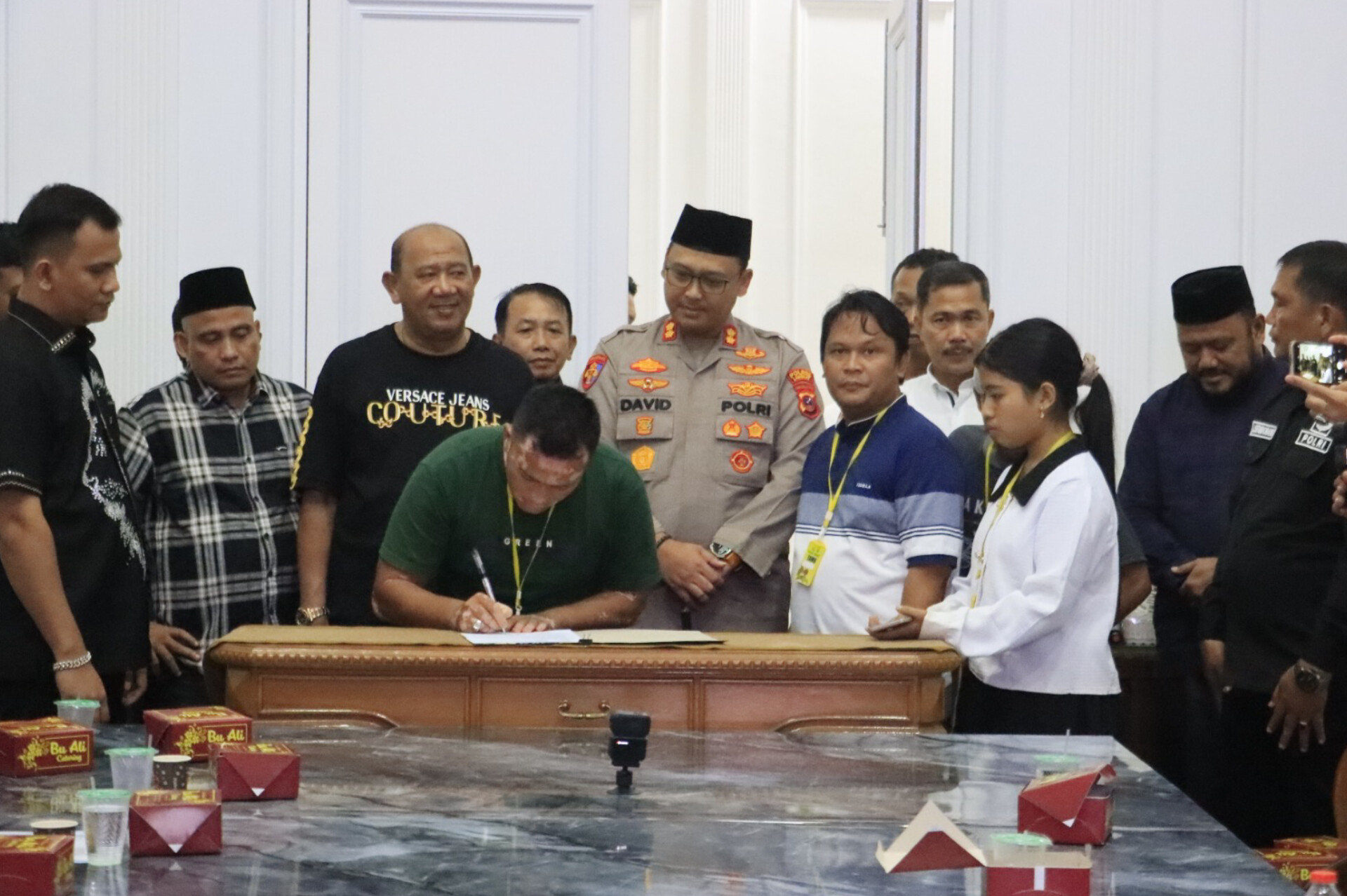 Dihadiri oleh Bupati Langkat Syah Afandin, Kapolres Langkat AKBP David Triyo Prasojo, unsur DPRD Kabupaten Langkat, Kejaksaan Negeri Langkat, unsur pemerintah daerah, Ketua FKUB Langkat, tokoh masyarakat, tokoh adat, serta keluarga dari kedua belah pihak.
