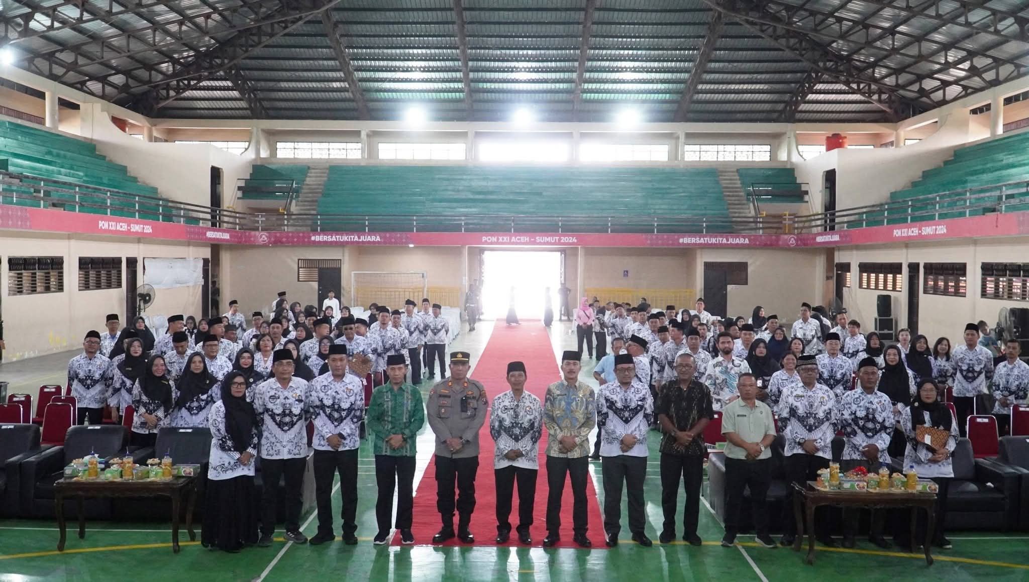 Langkat – Formappel. Com|| Bupati Langkat H. Syah Afandin, SH yang diwakili oleh Asisten Pemerintahan dan Kesejahteraan Rakyat Drs. H. Rudi Kinandung, M.AP menghadiri sekaligus membuka kegiatan Pelantikan Pengurus Cabang (PC) dan PC Khusus Persatuan Guru Republik Indonesia (PGRI) se-Kabupaten Langkat yang dirangkai dengan pembukaan Pekan Olahraga dan Seni Pelajar (Porsenijar) PGRI Kabupaten Langkat. Kegiatan tersebut berlangsung di Gedung Olahraga Stabat, Kamis (23/4/2026).