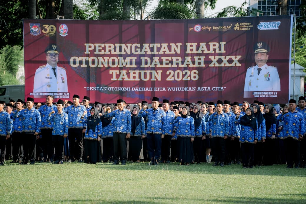 Bupati Deli Serdang, dr H Asri Ludin Tambunan memimpin Upacara Peringatan Hari Otonomi Daerah (Otda) ke-30 Tahun 2026 di Halaman Kantor Bupati Deli Serdang, Senin (27/4/2026).