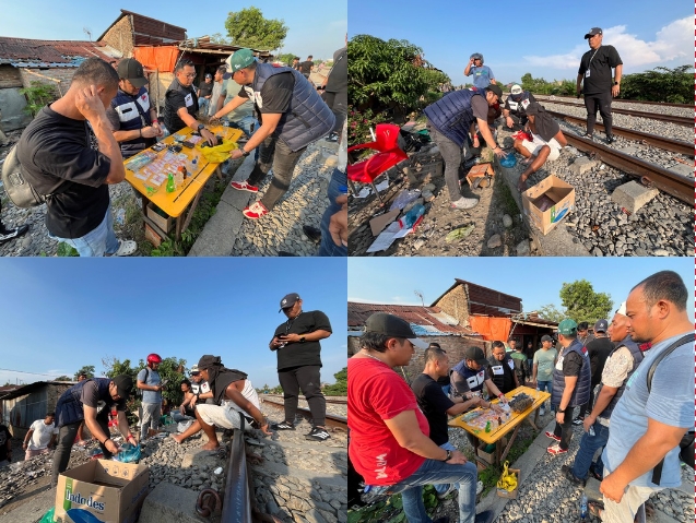 Dua titik sarang narkoba. di bantaran Rel Kereta Api Tembung yang jadi sasaran kali ini, Gang Nusa Indah, dan Gang Pisang, Desa Tembung, Kecamatan Percut Seituan. Sedangkan identitas 4 pria yang diduga pelaku narkoba yakni DS (40), AF (20), SH (37), dan ZS (48) keempatnya diringkus berikut barang bukti narkotika jenis sabu yang jumlahnya tidak sedikit.
