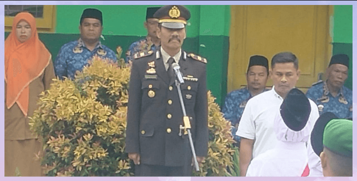 Kapolsek Muara Sipongi,Iptu Irwan Sastra Dinata mengikuti upacara memperingati Hari Pahlawan yang berlangsung di Lapangan Sekolah MTs 5 Muara Sipongi,Kelurahan Pasar Muara Sipongi,Kecamatan Muara Sipongi,Kabupaten Mandailing Natal,pada Minggu 10/11/2024 pagi.
